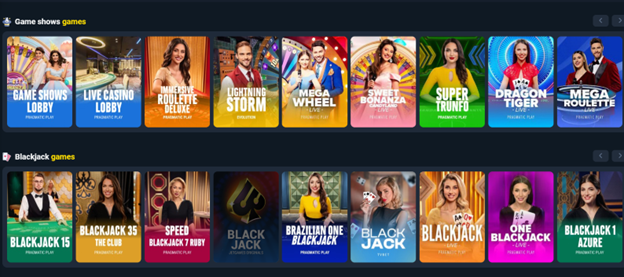 - Casino, sports, game shows, and esports