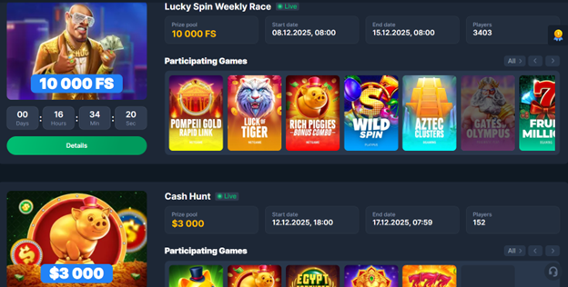 Tournaments: Join special weekly races and win large sums! Check the latest list of participating games and play to qualify!