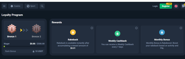 VIP Program and Loyalty Rewards: Play more often, climb the levels faster, and receive better perks, such as monthly bonuses, rakeback, and weekly cashback.