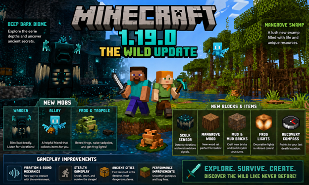 Minecraft 1.19.0, The Wild Update, stands out as one of the most immersive and thoughtfully designed updates in the game’s history. By focusing on atmosphere, interaction, and meaningful exploration, it brings a fresh perspective to a game that continues to evolve.